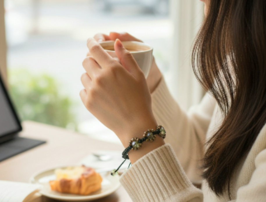 Adjustable Leather Bracelet with Crystal and Seed Beads Women