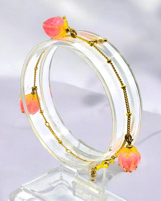 Blue and Pink Roses with Golden Thin Bracelet for Women and Girls