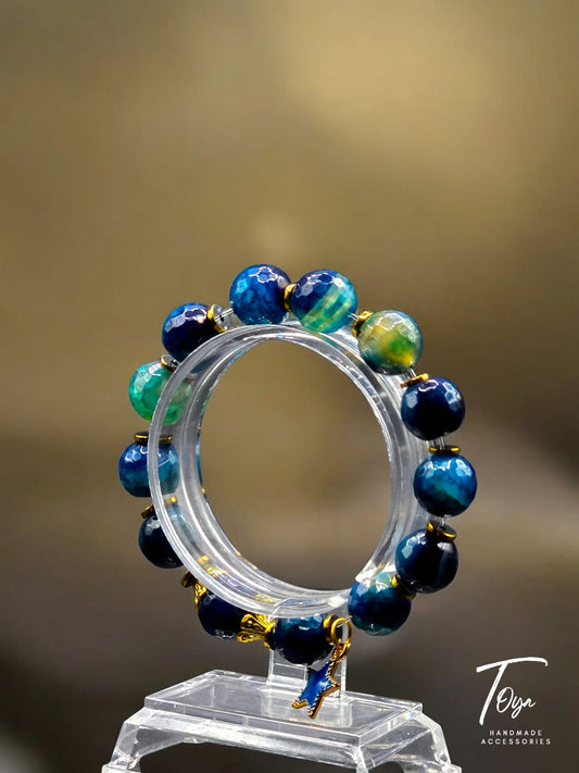 Exclusive New Design Double Face Mandala Handmade Resin Beads and Lake Blue Cloisonne Natural Stone Beads with Golden Hematite Spacera Bracelwt for Women