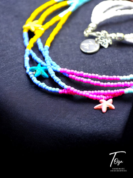 Multilayers Colorful Seed Beads with Star Fish Beads Necklace for Women and Girls