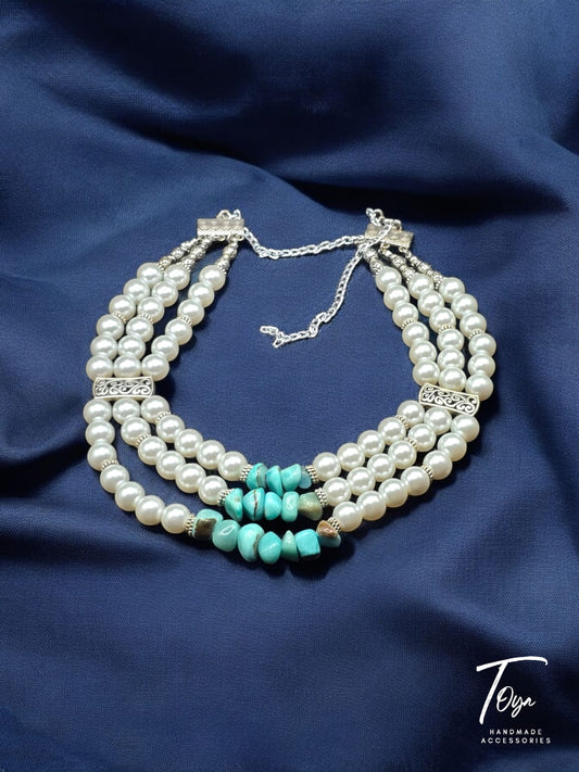 Multilayers Pearl and Rock Turquoise Beads Necklace for Women