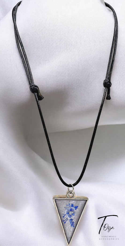 Royal Blue Flower Resin Pendant with Agate and Leather Chain Necklace for Women and Girls