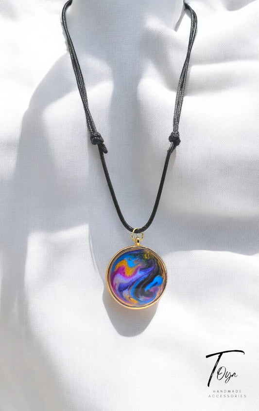 Golden Resin Colorful Pendant Leather Chain Necklace for Women and Girls