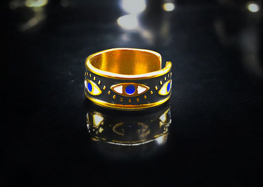 "Evil Eye" Ring, WATERPROOF-NON TARNISH 18K Gold Plated Steel Ring for Women