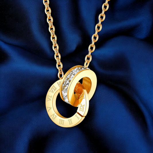 "Double Rings" WATERPROOF-NON TARNISH Necklace, 18K Gold Plated Steel Necklace for Women