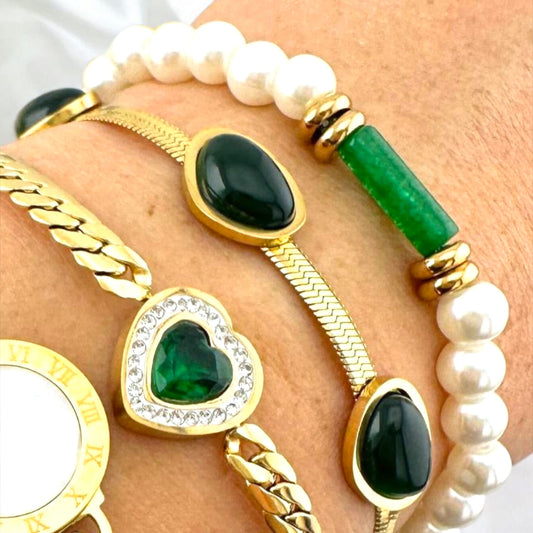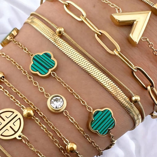 "Green Flowers" Bracelet, WATERPROOF-NON TARNISH 18K Gold Plated Steel Bracelet for Women