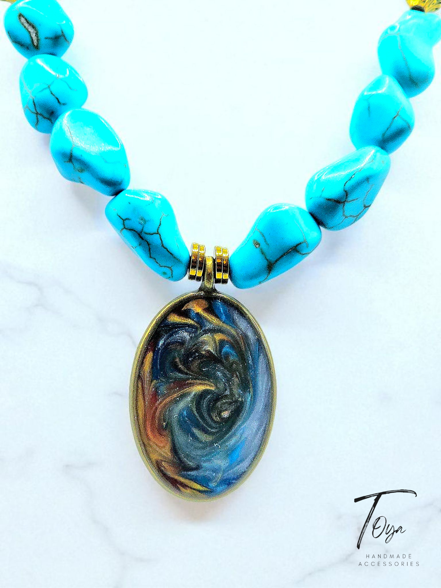 Turquoise and Agate with Colorful Resin Pendant Necklace for Women